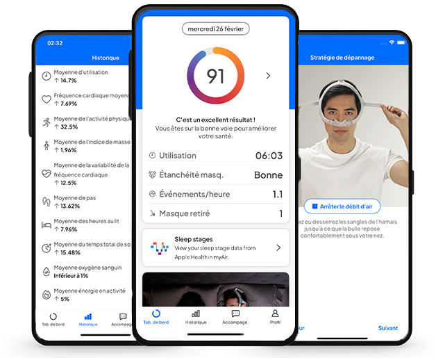 Si vous avez besoin d’accompagnement concernant votre traitement, votre équipement ou l’application myAir, consultez nos ressources d’assistance dans l’application myAir ou contactez votre professionnel de santé.